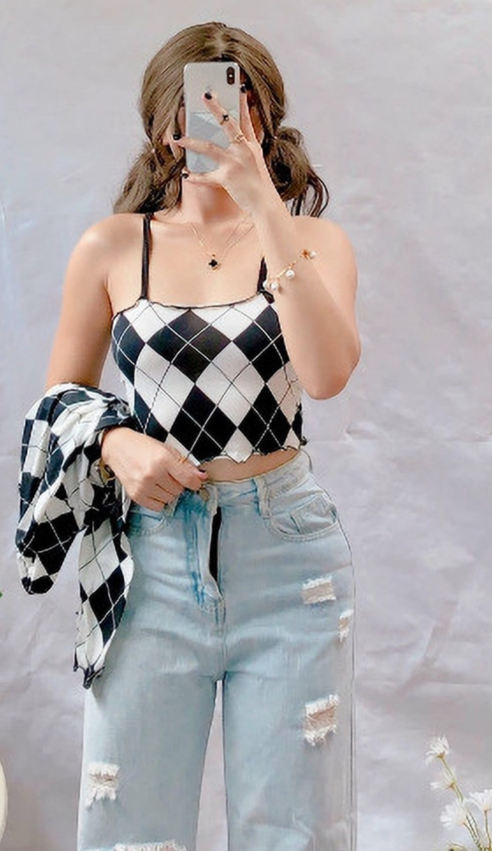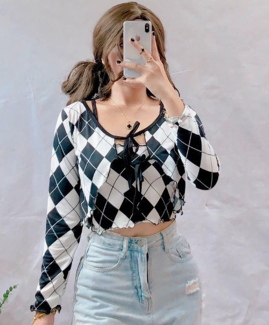 Be the first to review “Casual Regular sleeves checkered women white, dark green top”