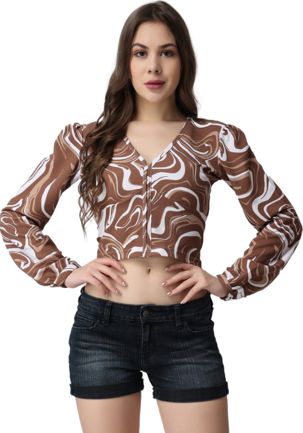 The Untouched Marble Print Design Which Is Not Available Anywhere Except Popwings For The Girls / Women Which Are Very Choosy To Fashion. Fabric Itself Has A Texture That Looks Natural Design Being Appreciated By Customers. Long Printed Sleeves With Stiched V Neck Which Gives An Eristic Scrumptious Look With A Range Of Colours. This Top Has Been Released Lately For Fashionable Women Out There And This Is Something Never Goes Outdated. Can Be Paired With Trouser To Jeans Officially & Unofficially And Has Been Amazing In Colors And Quality. All Are Women’s Closest Colors That They Love To Put On For Any Occasion Anytime Anywhere. Marble Prints All Over.