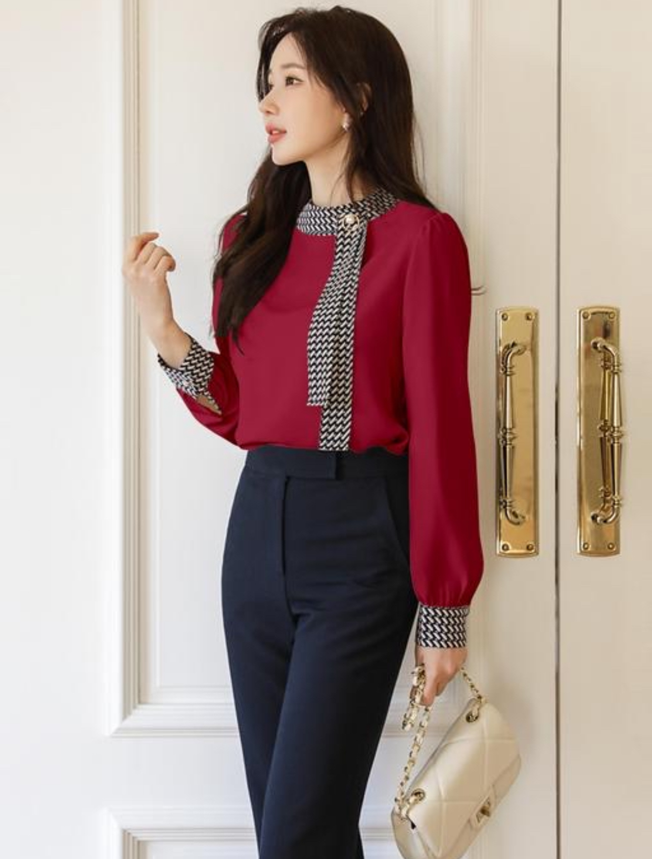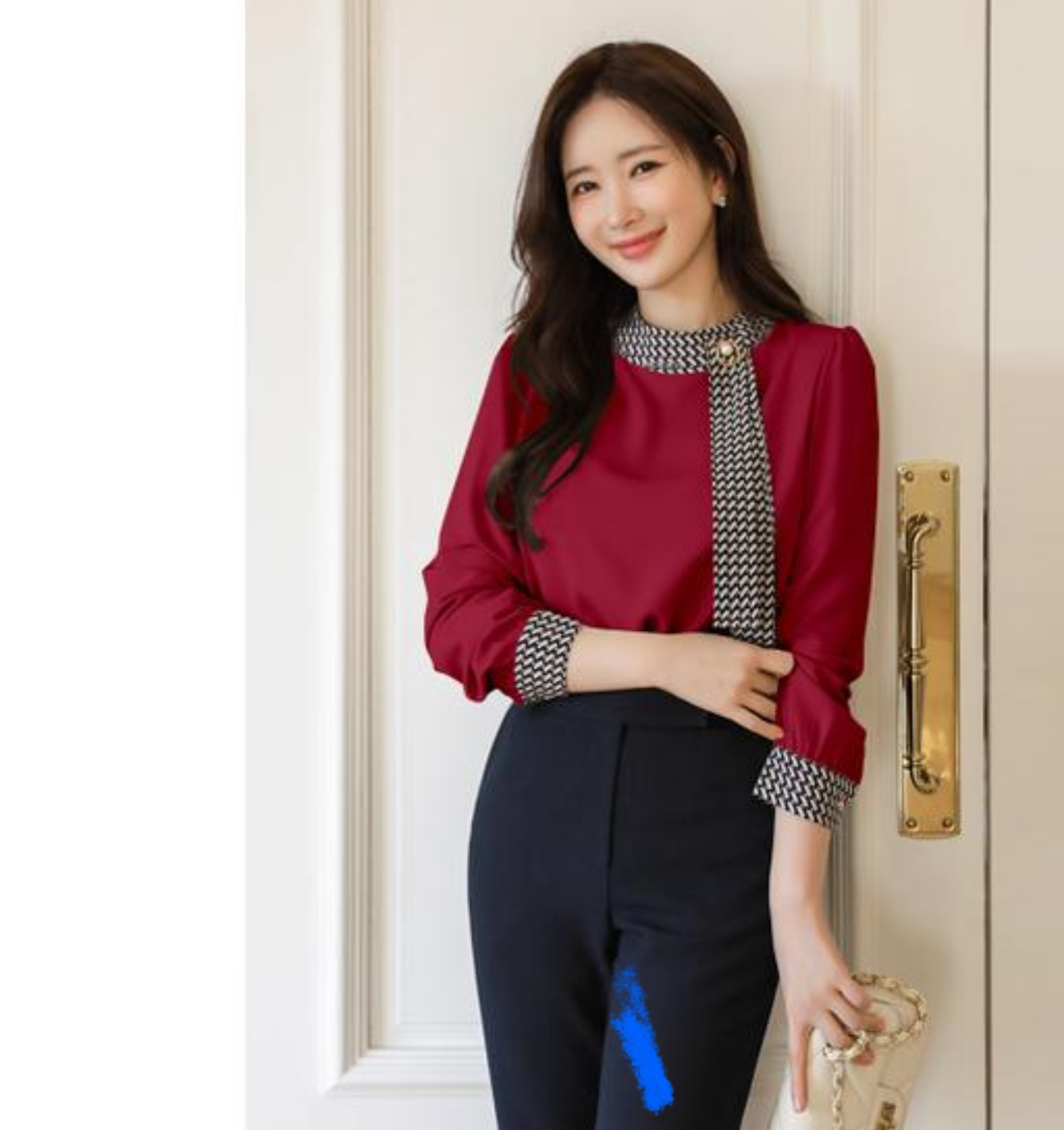 Name : Stylish Women’s Long Sleeve Top with Decorative Collar and Cuffs
